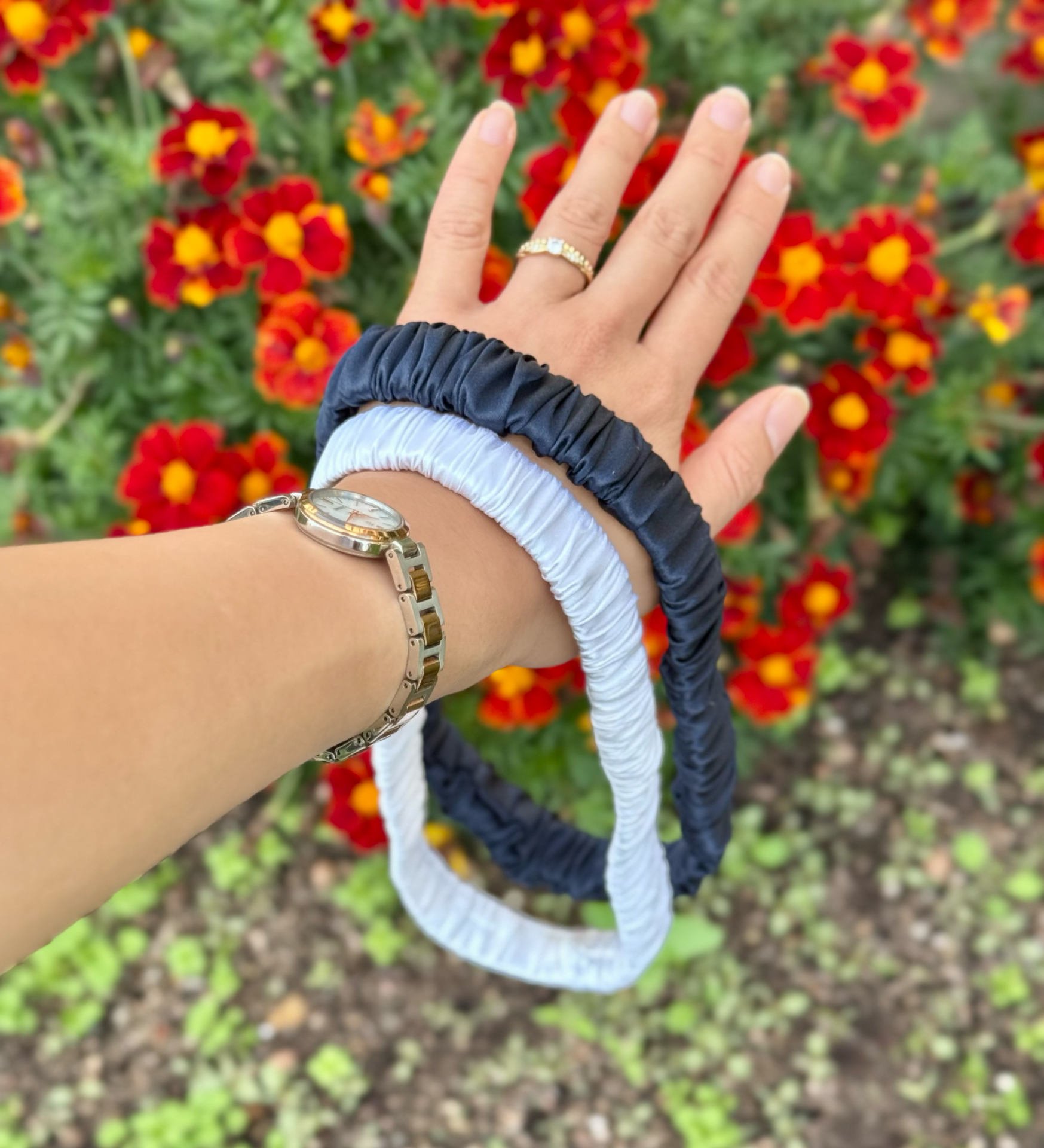 Hedvábná čelenka šíroká s velkou gumičkou